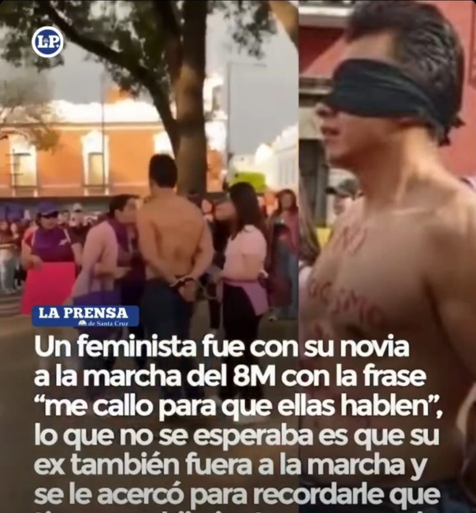 Un hombre asistió a la marcha del #8M junto a su novia con un cartel que decía “me callo para