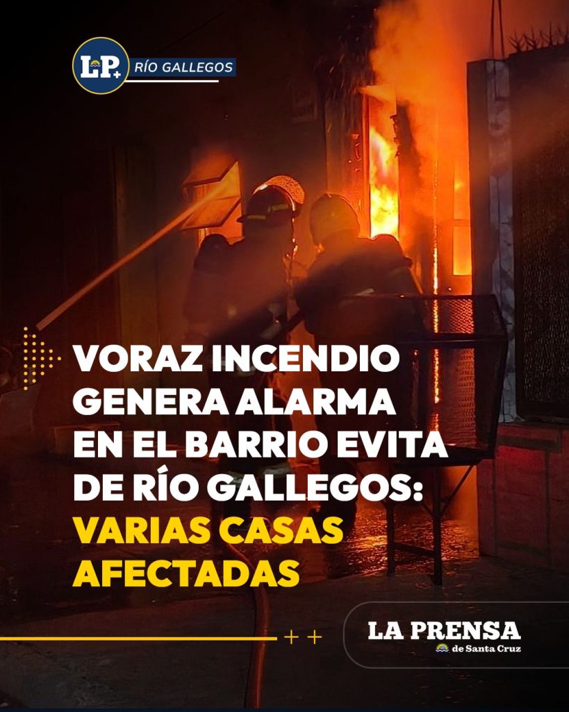 Un incendio de importantes dimensiones se desató este martes en el barrio Evita de Río Gallegos, generando alarma entre los vecinos y provocando severos daños materiales en al menos tres viviendas.