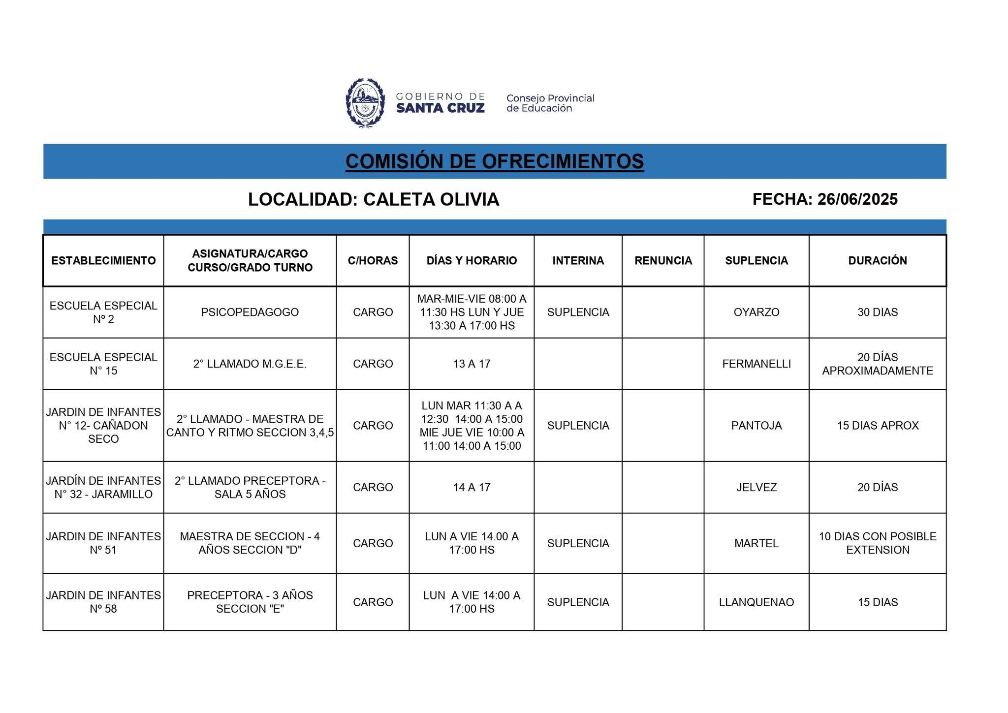 El Consejo Provincial de Educación informa que los ofrecimientos se realizan de forma presencial en cada regional y requieren estar