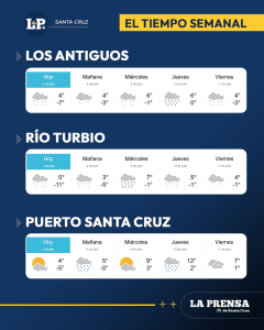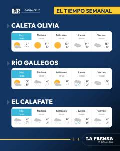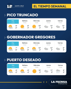 Sin embargo, el pronóstico del Servicio Meteorológico Nacional anticipa para esta semana un escenario completamente distinto: temperaturas máximas que alcanzarian los 19°C en algunas localidades de zona norte como caleta Olivia y mínimas nocturnas que superarán los 0°C, marcando un claro contraste con los días más fríos del invierno santacruceño.