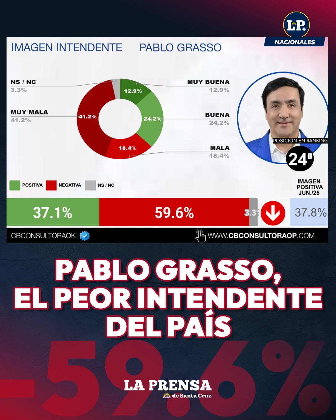Pablo Grasso lidera el ranking nacional de intendentes con mayor imagen negativa. Con un 59,6 % de rechazo, según el