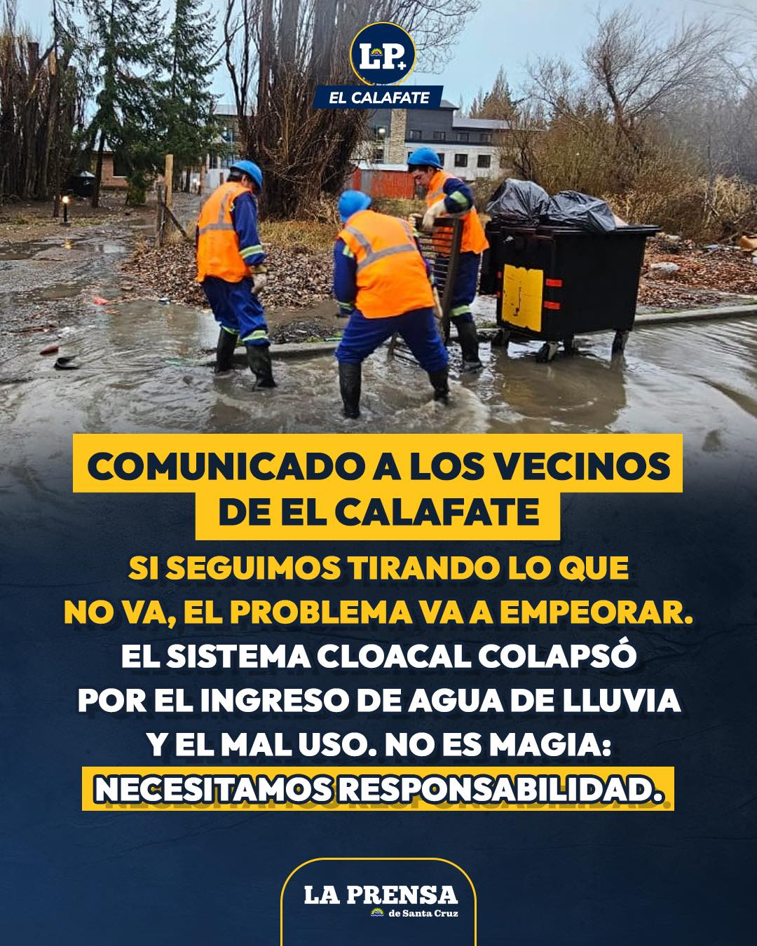 Ante la situación que atraviesa El Calafate por el desborde del sistema cloacal, producto del ingreso excesivo de aguas pluviales