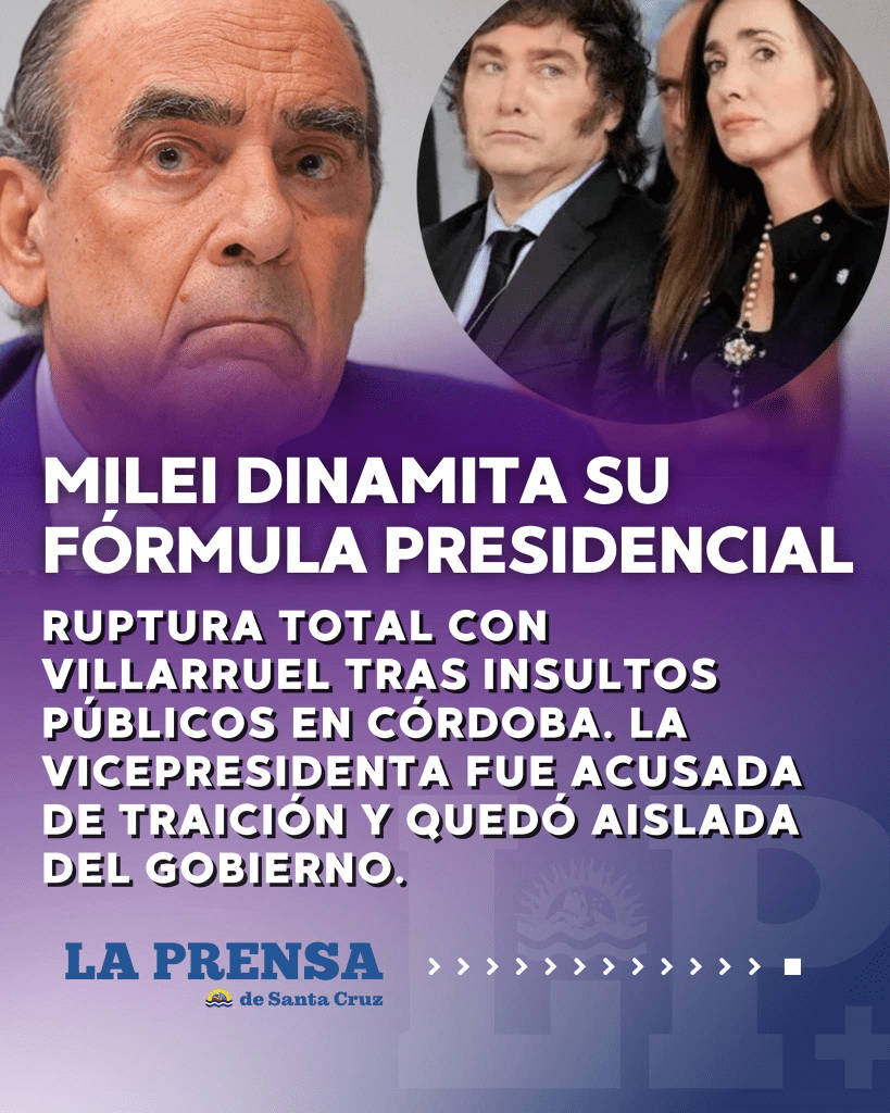 En el acto La Derecha Fest del miércoles 23 de julio en Córdoba, Javier Milei lanzó un tiro de gracia político: calificó a su vicepresidenta Victoria Villarruel de “bruta traidora”, instó a la multitud a insultarla y replicó críticas que la retratan como “parásita” y “aliada del kirchnerismo” . Fue la confirmación que el vínculo está no roto, sino pulverizado.