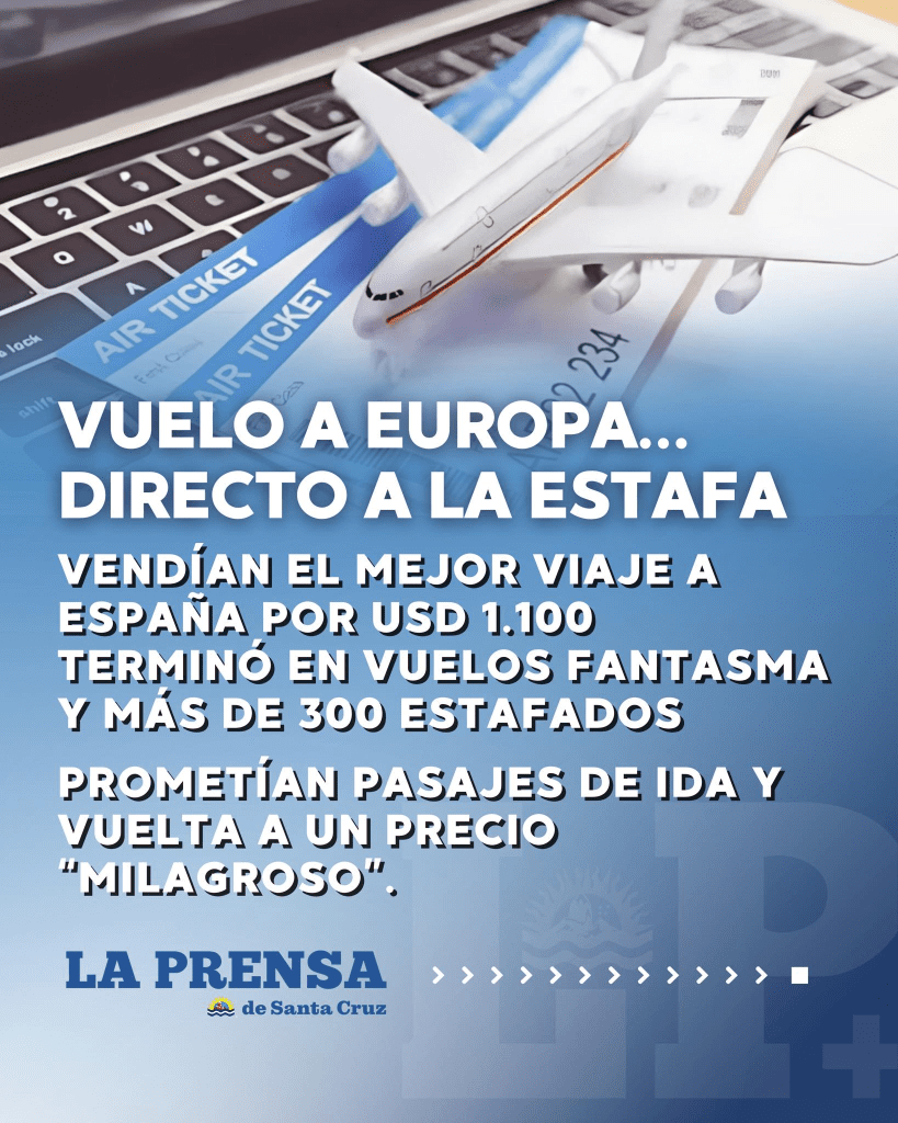 Era la promesa perfecta: pasajes ida y vuelta a España por US$ 1 100, una cifra tentadora en plena escalada del dólar y restricciones cambiarias. Pero detrás del precio milagroso se escondía una estafa que ya dejó a más de 300 personas sin vuelo, sin reembolso y, en muchos casos, sin respuestas. La presunta autora, identificada por las víctimas como una mujer que operaba a través de redes sociales y WhatsApp, hoy es investigada por la Justicia penal.