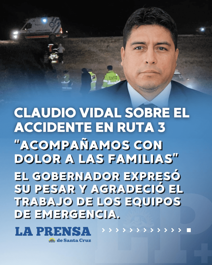 El gobernador de Santa Cruz, Claudio Vidal, expresó su profundo pesar ante el trágico accidente ocurrido en la noche del jueves en la Ruta Nacional N.º 3, a pocos kilómetros de Río Gallegos, que dejó como saldo víctimas fatales y varios heridos.