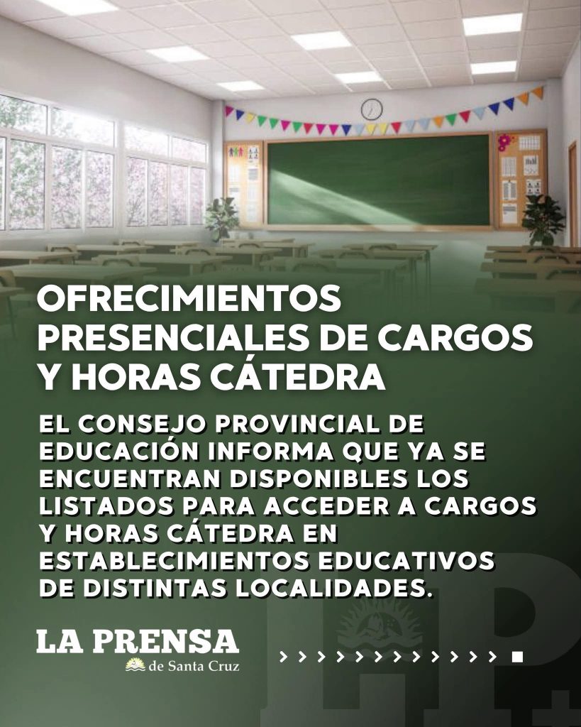 El Consejo Provincial de Educación, a través de las Comisiones de Ofrecimientos, informa que están disponibles los listados para acceder a cargos y horas cátedra en los establecimientos educativos de distintas localidades de la provincia.
