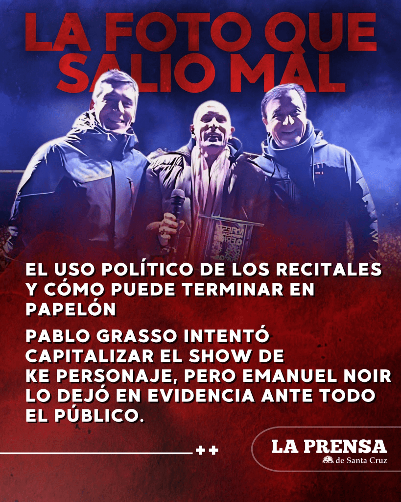 Durante el cierre de la Fiesta Provincial del Frío, el intendente Pablo Grasso intentó capitalizar el show masivo de la banda Ke Personaje buscando una foto de campaña con el vocalista Emanuel Noir. Lo que pretendía ser un momento de lucimiento institucional terminó en una escena incómoda y bochornosa que rápidamente se volvió viral.