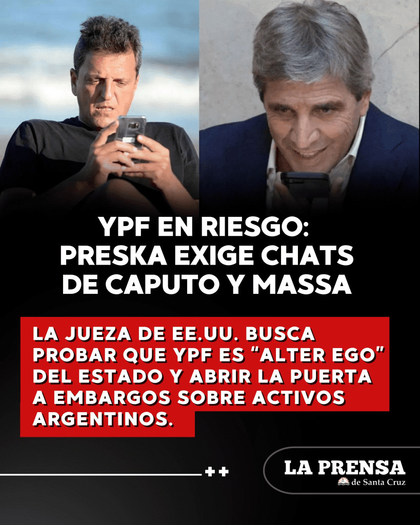 EMBARGOS EN PUERTA: PRESKA EXIGE CHATS DE CAPUTO Y MASSA Y REACTIVA RIESGO DE PERDER YPF