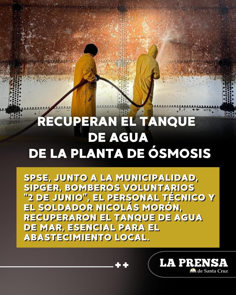 Con una intervención técnica sin precedentes en los últimos años, se logró recuperar y poner en funcionamiento el tanque de agua de mar de la planta de ósmosis inversa de Caleta Olivia, una infraestructura clave para garantizar el suministro de agua a la comunidad.