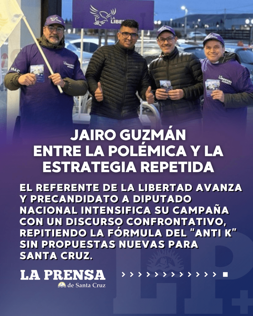 Jairo Guzmán emerge como la expresión más radicalizada del armado libertario en la Patagonia. Su retórica busca interpelar el malestar, apela a consignas nacionales y espera recibir el impulso de Milei, pero su proyección se ve empañada por escándalos personales, una historia institucional débil y una lógica política agotada en Santa Cruz.