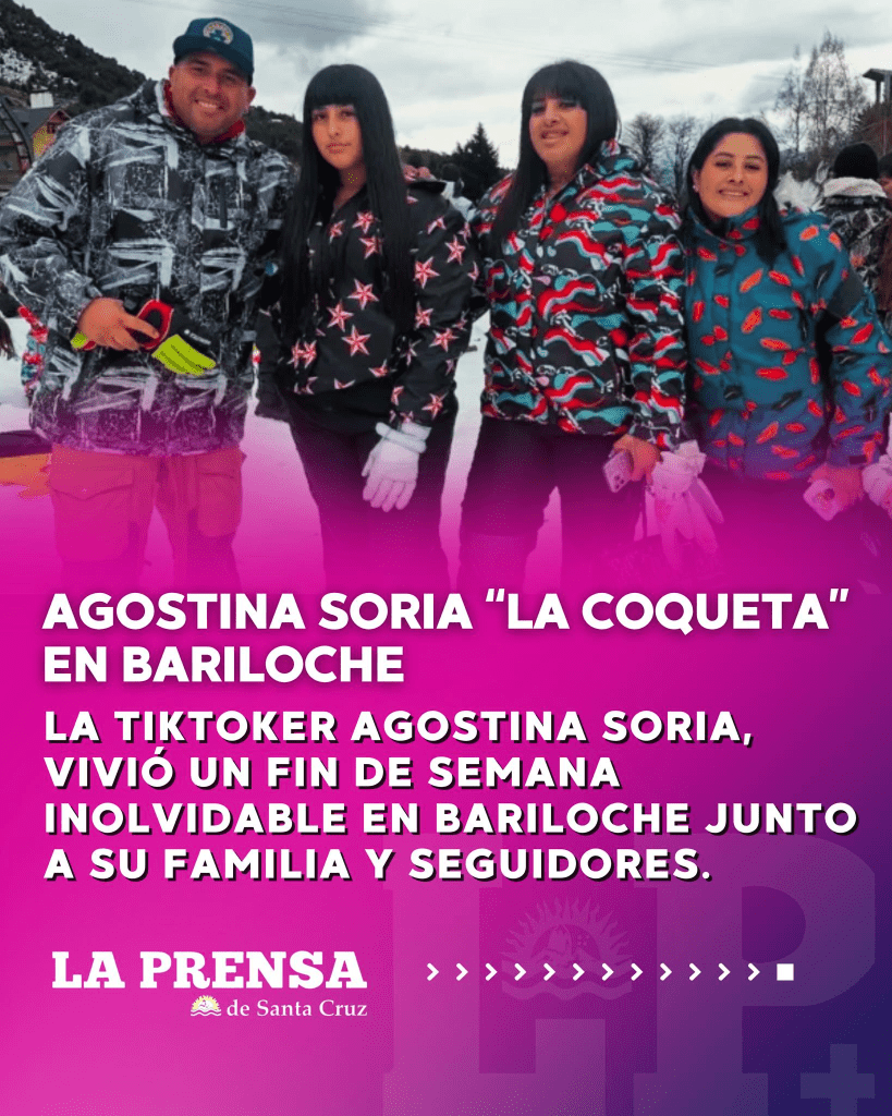 Conocida por su frase viral “Acompañenon”, la tiktoker Agostina Soria —más popularmente reconocida como La Coqueta— vivió un emotivo fin de semana en Bariloche acompañada por su familia y una multitud de seguidores que se acercaron para saludarla.