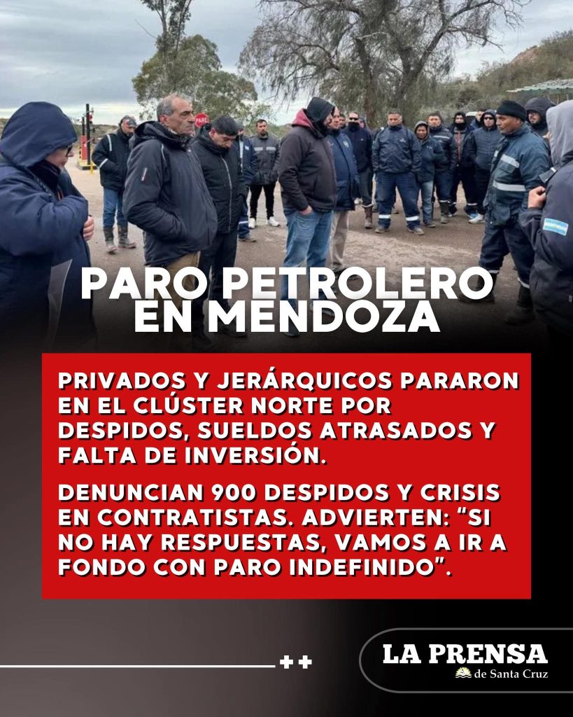 “Si se tiene que parar la producción de la provincia, se va a parar”, advirtió Gabriel Barroso, titular del Sindicato de Petroleros Privados de Mendoza. El dirigente denunció, junto a Javier Matamala, secretario general del Sindicato de Personal Jerárquico de Petróleo de Cuyo, que desde que PS asumió el control de las áreas maduras Barrancas, Vizcacheras, La Ventana, Mesa Verde, Ceferino y Río Tunuyán —tras la cesión de YPF—, se han registrado “por lo menos 900 despidos”.