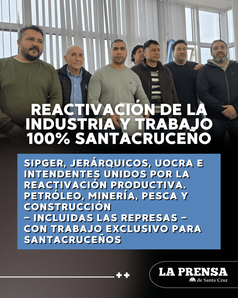 Como resultado, se firmó un comunicado conjunto en el que manifestaron su apoyo a las medidas que lleva adelante el Gobierno provincial para priorizar la mano de obra local, y solicitaron que los puestos en los sectores hidrocarburífero, minero, pesquero y de la construcción —en especial los de las represas sobre el río Santa Cruz— sean ocupados exclusivamente por santacruceños.