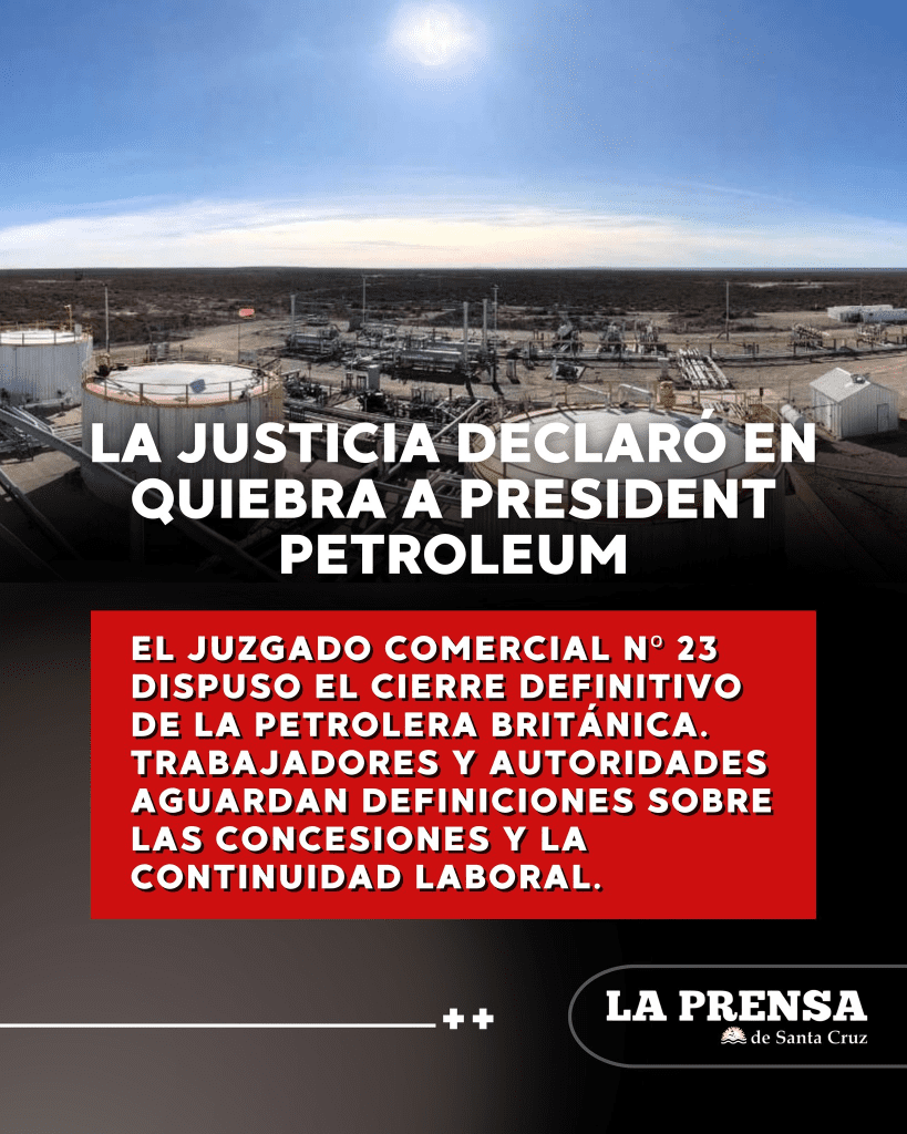 El Juzgado Nacional en lo Comercial Nº 23, con competencia federal, declaró este 12 de agosto la quiebra de President Petroleum S.A., la empresa de capitales británicos que operaba áreas en Río Negro y Salta. La medida fue tomada tras el pedido de la propia compañía, que no logró revertir una delicada situación financiera y operativa.