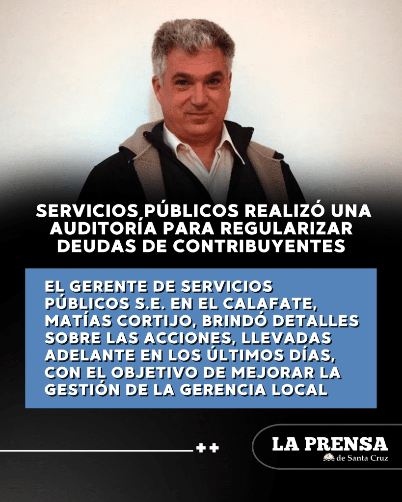 La Gerencia de Servicios Públicos S.E. en El Calafate solicitó una auditoría con el fin de garantizar un seguimiento de las deudas de los usuarios, y asegurar que los procesos de intimación y cortes se realicen de manera justa y transparente.