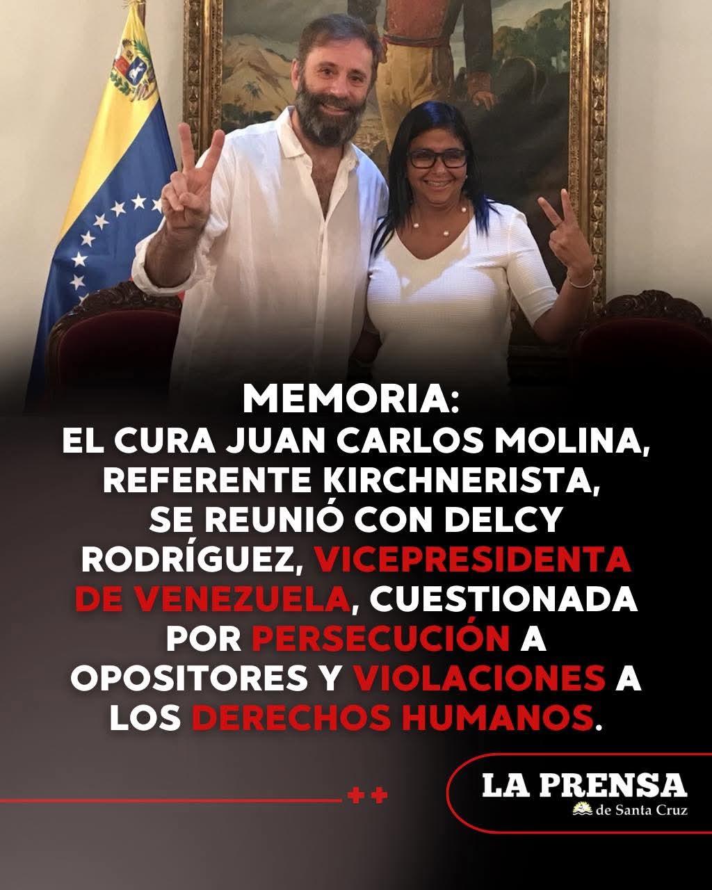 Hace un tiempo, el cura Juan Carlos Molina —referente político ligado al kirchnerismo— mantuvo una reunión con Delcy Rodríguez, actual