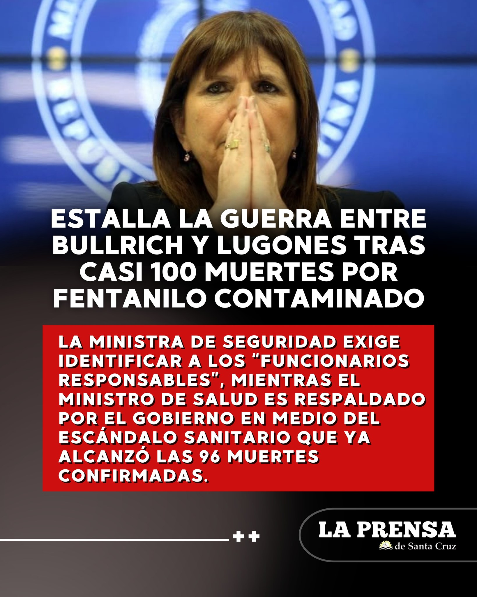 ESTALLA LA GUERRA ENTRE BULLRICH Y LUGONES TRAS CASI 100 MUERTES POR FENTANILO CONTAMINADO