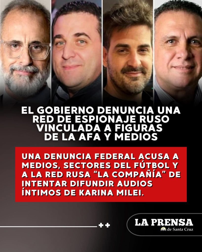 Una denuncia presentada ante la Justicia federal sostiene que una operación orquestada desde medios y entornos del fútbol, con el presunto apoyo de una red rusa denominada “La Compañía”, buscó divulgar audios íntimos de Karina Milei. Los allanamientos a periodistas, dirigentes y plataformas generan una escalada institucional con implicancias políticas y diplomáticas.