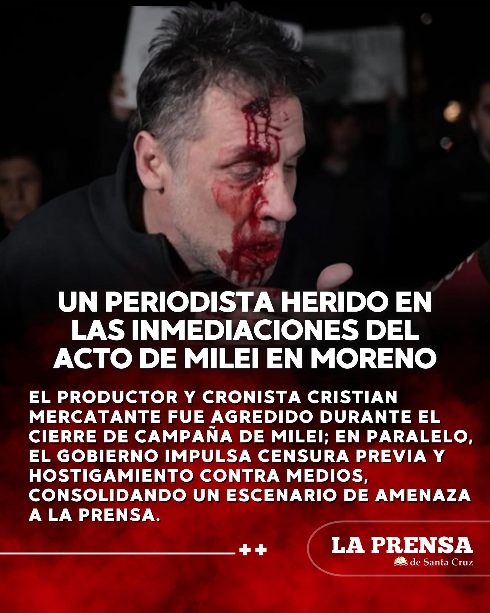 El productor y cronista Cristian Mercatante fue agredido durante el cierre de campaña de Milei; en paralelo, el Gobierno impulsa