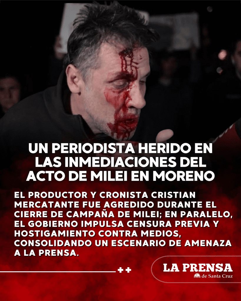El productor y cronista Cristian Mercatante fue agredido durante el cierre de campaña de Milei; en paralelo, el Gobierno impulsa censura previa y hostigamiento contra medios, consolidando un escenario de amenaza a la prensa.