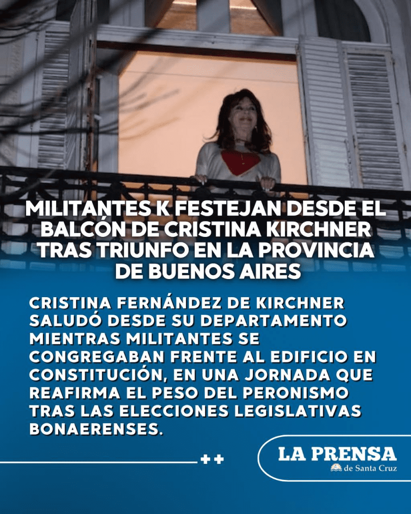 Cristina Fernández de Kirchner saludó desde su departamento mientras militantes se congregaban frente al edificio en Constitución, en una jornada que reafirma el peso del peronismo tras las elecciones legislativas bonaerenses.