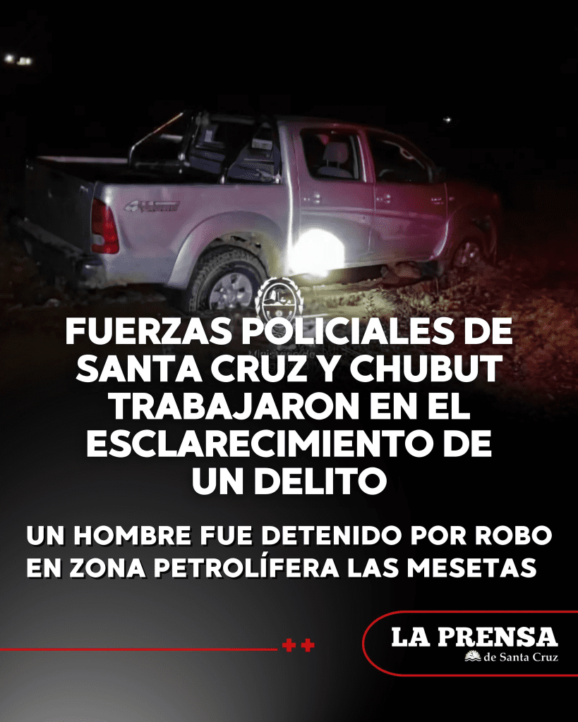 Un hombre fue detenido por robo en zona petrolífera Las Mesetas, a unos 65 kilómetros de Las Heras, a partir de un trabajo conjunto entre la División de Investigaciones de Las Heras y sus pares de Comodoro Rivadavia, y la intervención del Juzgado de Instrucción y Penal Juvenil N°1 de Las Heras.