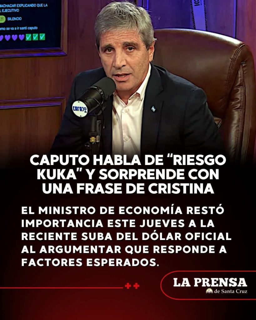 El término “riesgo kuka” aparece reiteradamente cuando Caputo alude a la posibilidad de que surgieran crisis de confianza, corridas cambiarias o episodios de fuerte demanda de dólares si un actor relevante del escenario político utilizara retórica que genere temor, incertidumbre regulatoria o fiscal. No todas las fuentes coinciden en el origen exacto del término, pero se lo usa en el Palacio de Hacienda para encapsular esa noción de riesgo político-electoral que afecta los mercados.