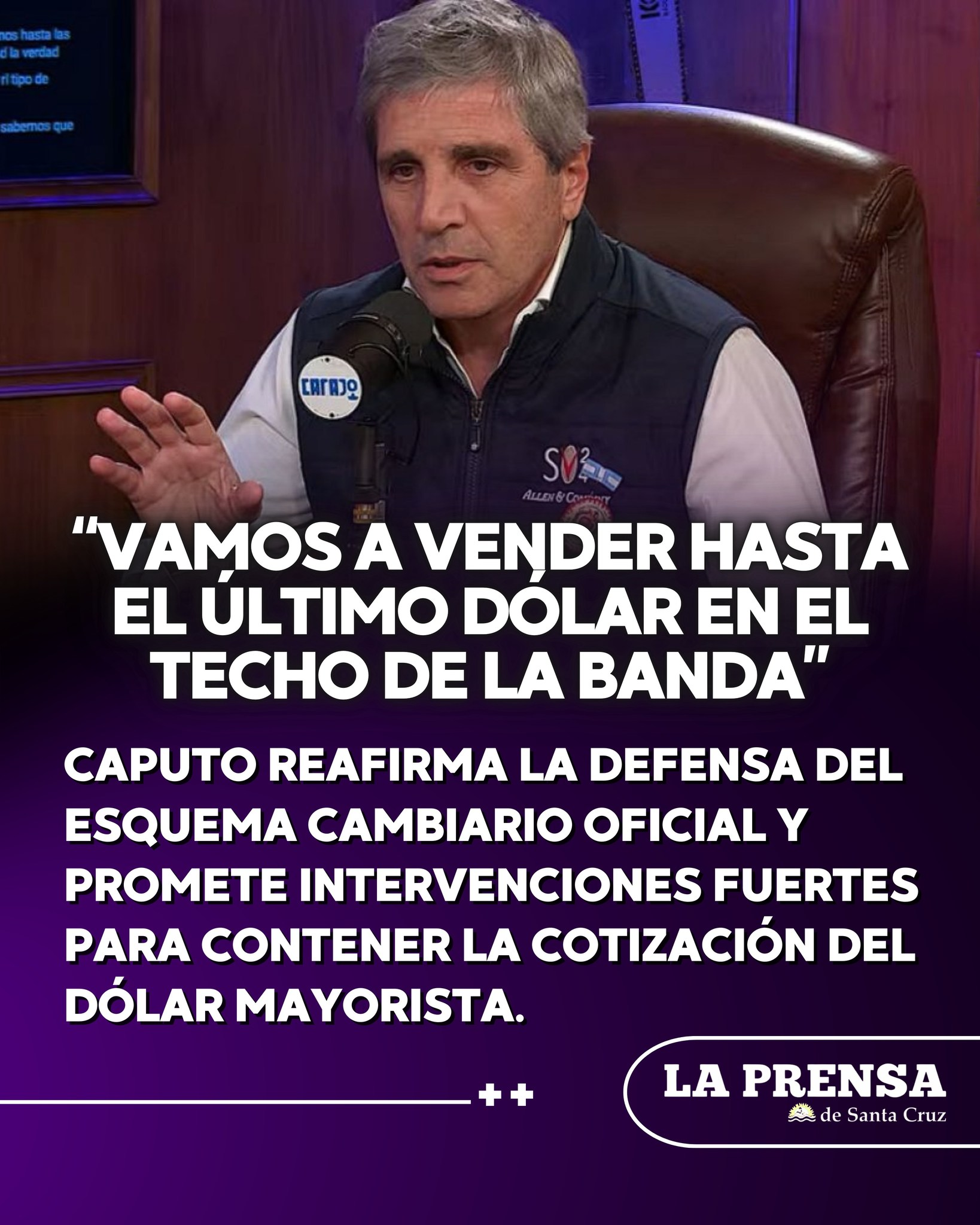 Caputo reafirma la defensa del esquema cambiario oficial y promete intervenciones fuertes para contener la cotización del dólar mayorista. El
