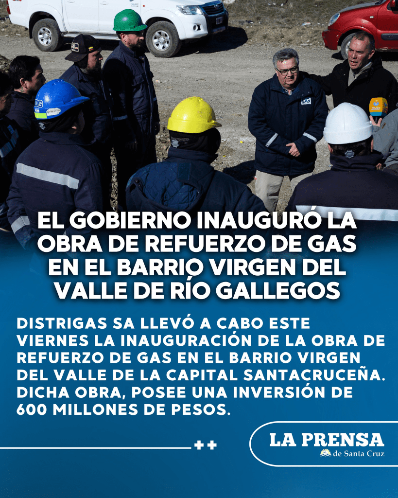 El Gobierno de Santa Cruz, a través de Distrigas SA, llevó a cabo este viernes la inauguración de la obra de refuerzo de gas en el Barrio Virgen del Valle de la capital santacruceña. Dicha obra, posee una inversión de 600 millones de pesos y busca tanto beneficiar a 1.300 familias como mejorar la prestación.