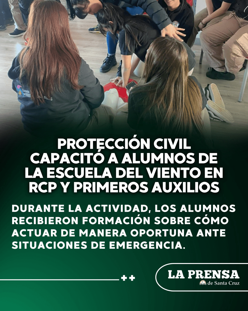 Con el objetivo de fortalecer la preparación ante emergencias, personal de Protección Civil llevó a cabo una jornada de capacitación teórico-práctica en Reanimación Cardiopulmonar (RCP), Obstrucción Vía Aérea (OVA) y primeros auxilios, dirigida a los alumnos de la Escuela del Viento.