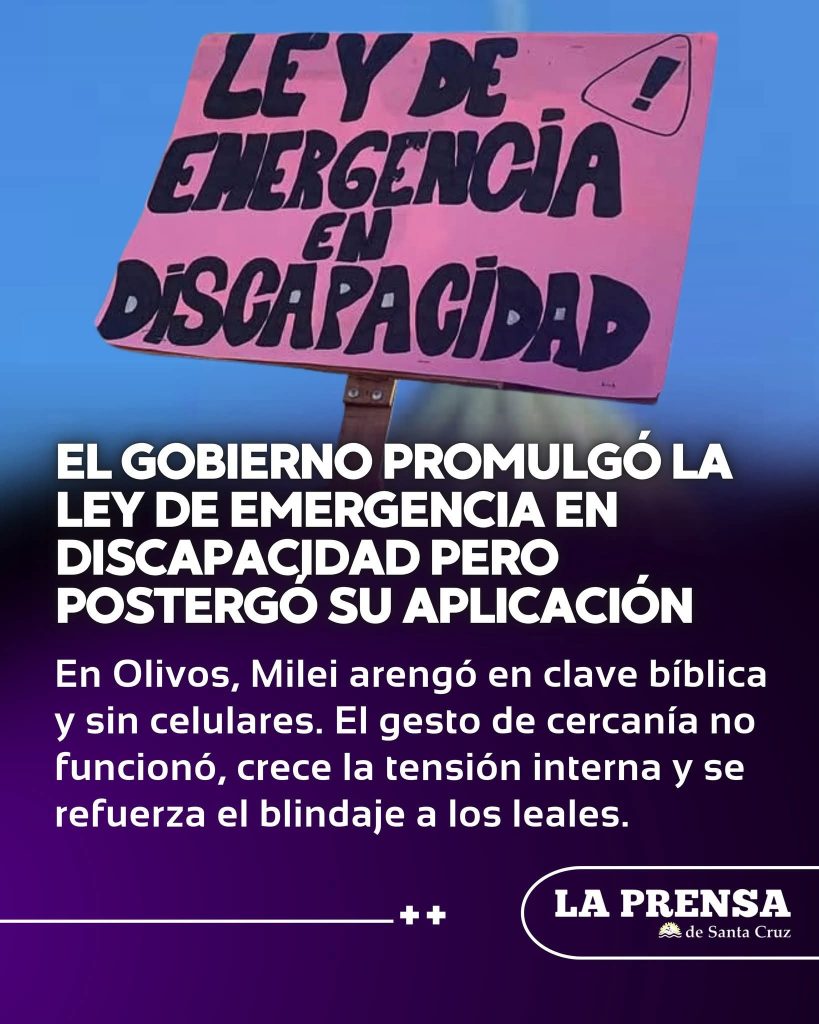 El Gobierno nacional promulgó la Ley 27.793 de Emergencia en Discapacidad, pero al mismo tiempo suspendió su aplicación por considerar que no existen fuentes de financiamiento suficientes para cubrir los costos que implica. La medida fue publicada en el Boletín Oficial y establece la emergencia hasta el 31 de diciembre de 2026.