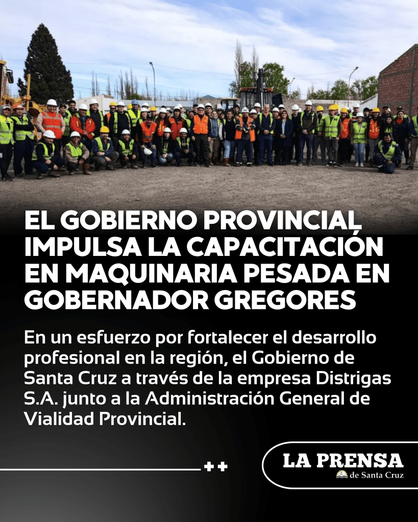 En un esfuerzo por fortalecer el desarrollo profesional en la región, el Gobierno de Santa Cruz a través de la empresa Distrigas S.A. junto a la Administración General de Vialidad Provincial, inició los talleres prácticos de maquinaria pesada en la localidad de Gobernador Gregores.