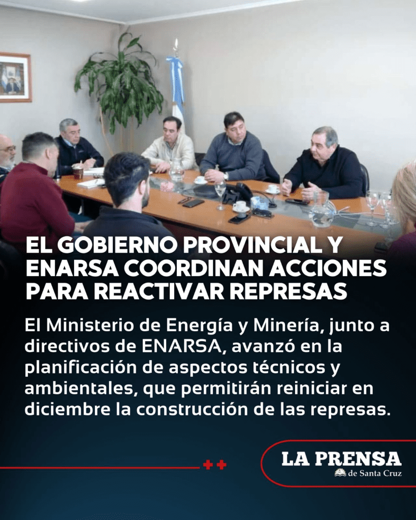 El Gobierno de Santa Cruz, a través del Ministerio de Energía y Minería, trabaja en conjunto con la empresa estatal Energía Argentina S.A. (ENARSA), para ultimar los detalles técnicos que posibiliten la reactivación de las represas sobre el río Santa Cruz.