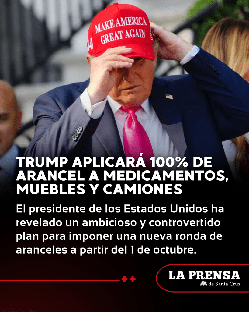 TRUMP ANUNCIARÁ ARANCELES DEL 100 % A LOS MEDICAMENTOS Y GRAVÁMENES SOBRE MUEBLES Y CAMIONES