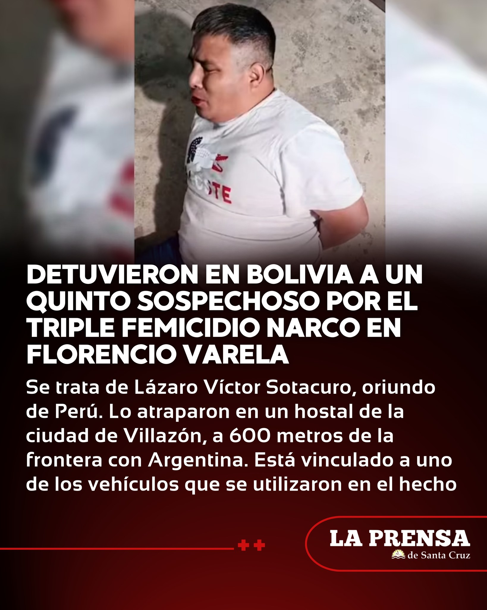 Se confirmó este sábado la detención en Bolivia de Lázaro Víctor Sotacuro, identificado como el quinto sospechoso vinculado al sangriento