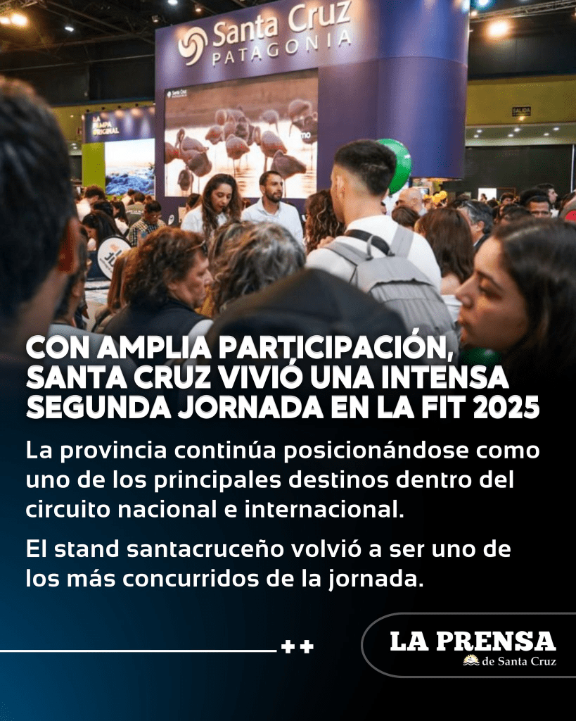 La segunda jornada de la Feria Internacional de Turismo (FIT) 2025 se desarrolló este domingo con un importante flujo de público, y Santa Cruz volvió a destacar con su stand institucional, que concentra las propuestas de múltiples localidades y prestadores turísticos de la provincia.