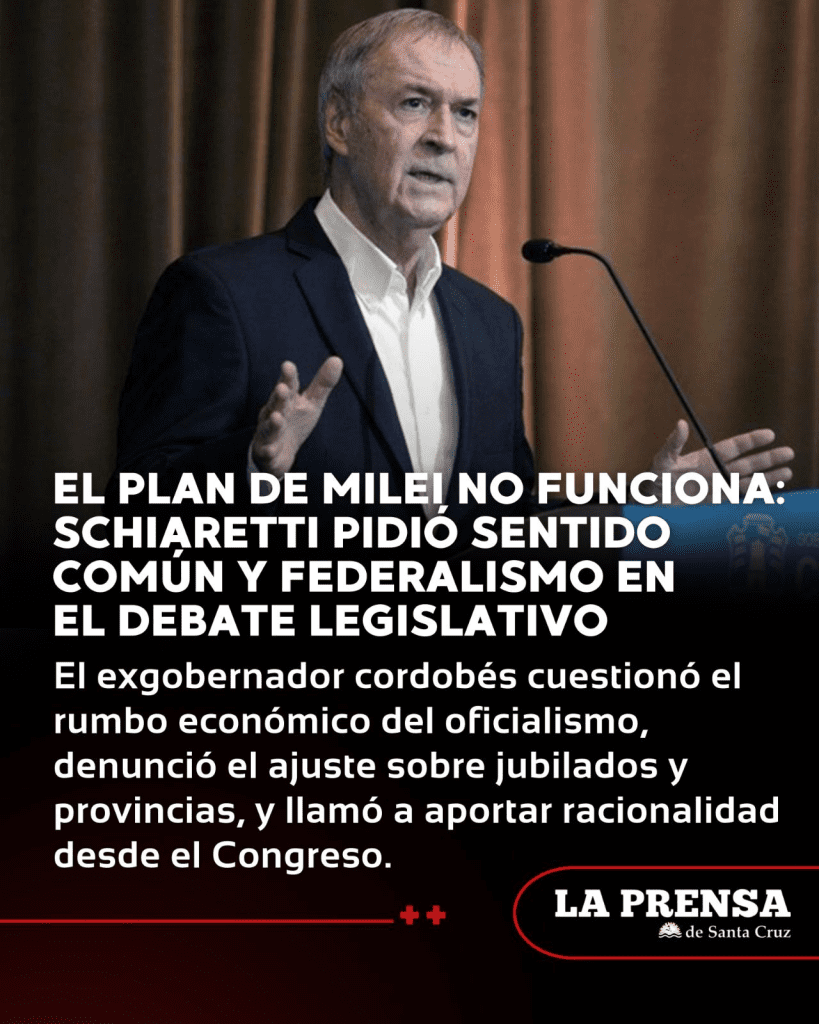 Al referirse al auxilio de Washington, Schiaretti fue enfático: “Pedir apoyo de EE. UU. muestra el fracaso del programa económico de Milei”. También denunció que el ajuste nacional se ejecutó a costa de jubilados, provincias, municipios, universidades y el sistema científico, y reclamó transparencia sobre el destino de los recursos retraídos.