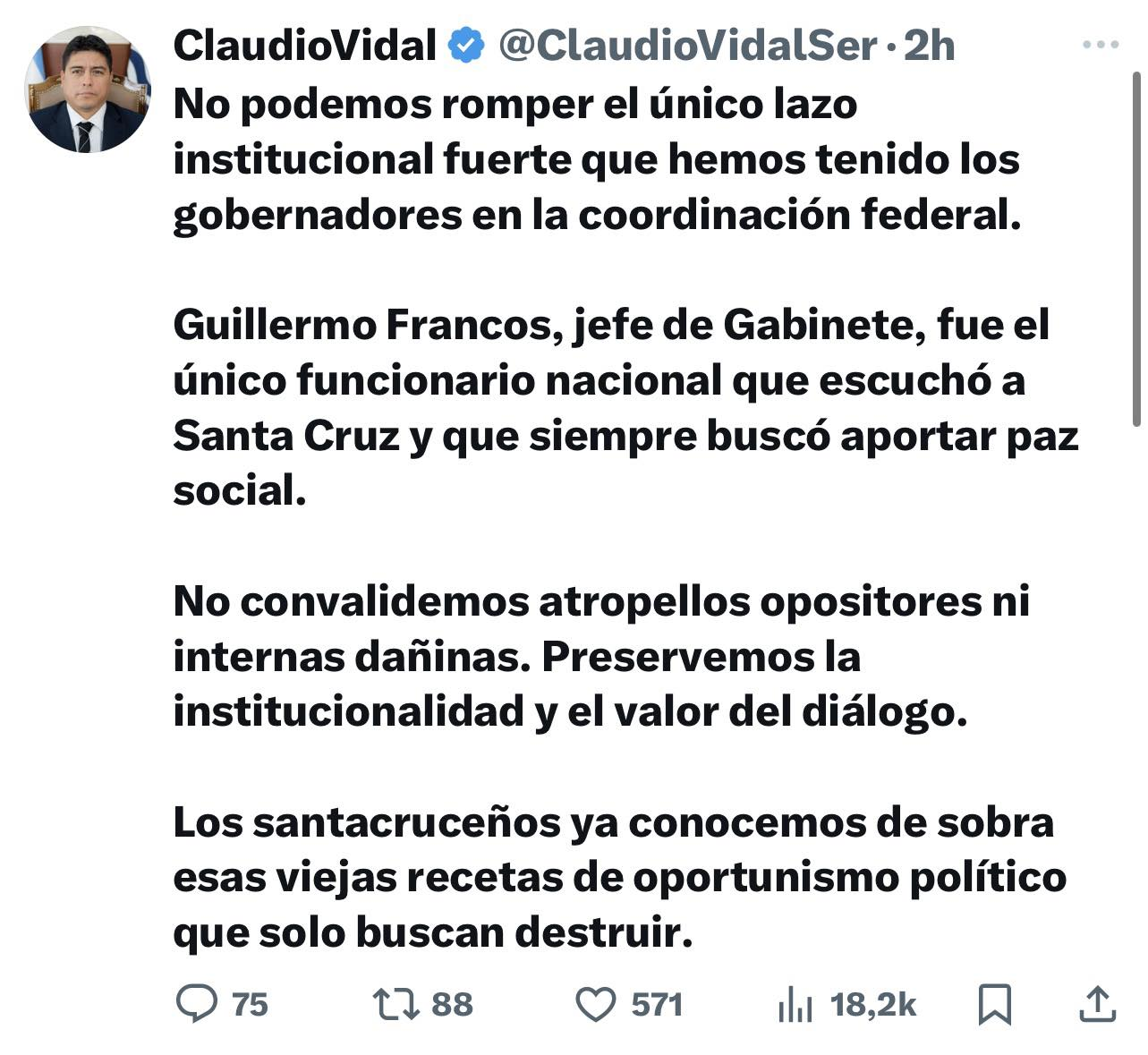 Vidal: “Preservar la institucionalidad y el diálogo”