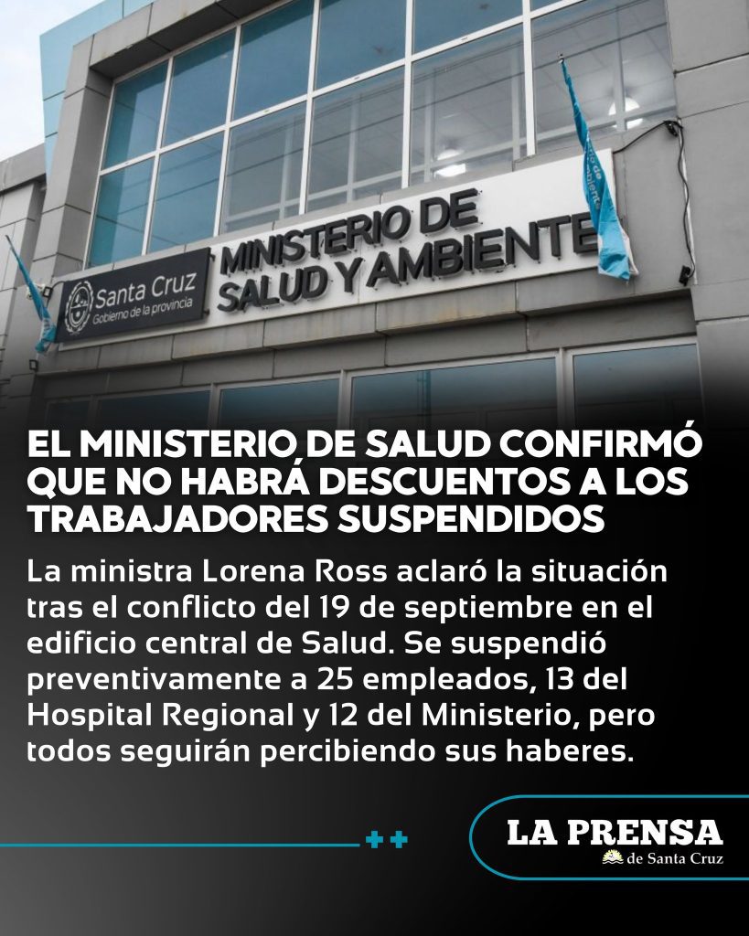 La ministra Lorena Ross aclaró la situación tras el conflicto del 19 de septiembre en el edificio central de Salud. Se suspendió preventivamente a 25 empleados —13 del Hospital Regional y 12 del Ministerio—, pero todos seguirán percibiendo sus haberes.