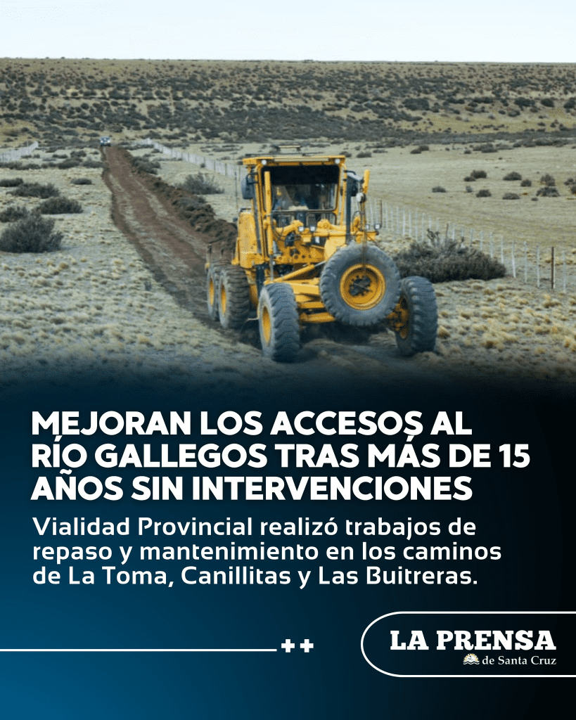 Luego de un pedido elevado por el Ministerio de la Producción, Comercio e Industria, a través de la Secretaría de Estado de Pesca y Acuicultura, Vialidad Provincial realizó trabajos de repaso y mantenimiento en los caminos de La Toma, Canillitas y Las Buitreras (Paso de las Tres Tranqueras), sectores que conforman los principales accesos públicos al río Gallegos.