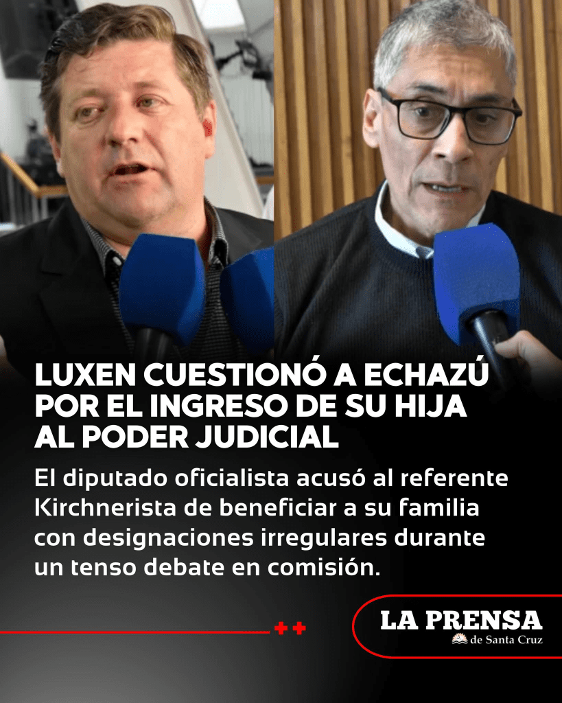 Luxen, presidente del bloque Por Santa Cruz, apuntó directamente contra el referente kirchnerista y titular del bloque Unión por la Patria, acusando que su hija habría ingresado al Poder Judicial de forma irregular. “Yo tengo datos concretos de los últimos 70 días sobre los ingresos que realizó el Tribunal Superior de Justicia. En ese período se incorporó personal que supera ampliamente el presupuesto destinado a los nuevos vocales”, afirmó el legislador oficialista.
