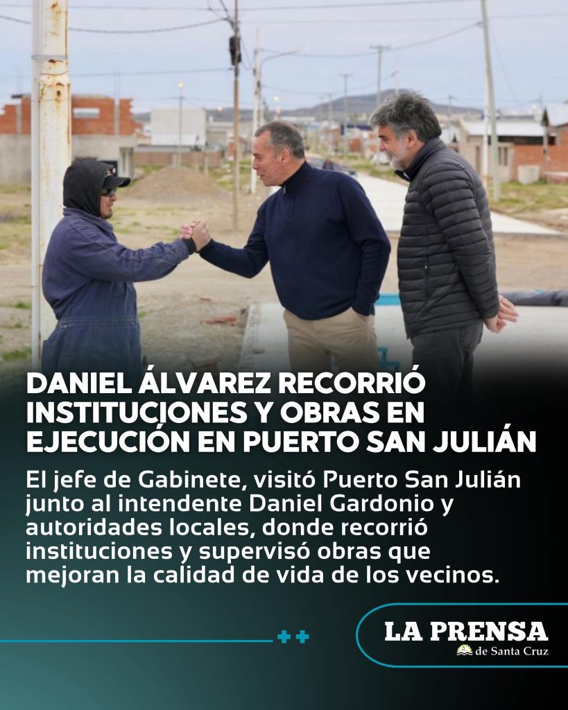 El jefe de Gabinete de Ministros de Santa Cruz, Daniel Álvarez, cumplió una intensa agenda en Puerto San Julián, donde junto al intendente Daniel Gardonio, el concejal Francisco Oyarzún y el secretario de Gobierno municipal, Omar Fernández, visitó instituciones locales y recorrió obras en marcha destinadas a mejorar los servicios y la calidad de vida de los vecinos.