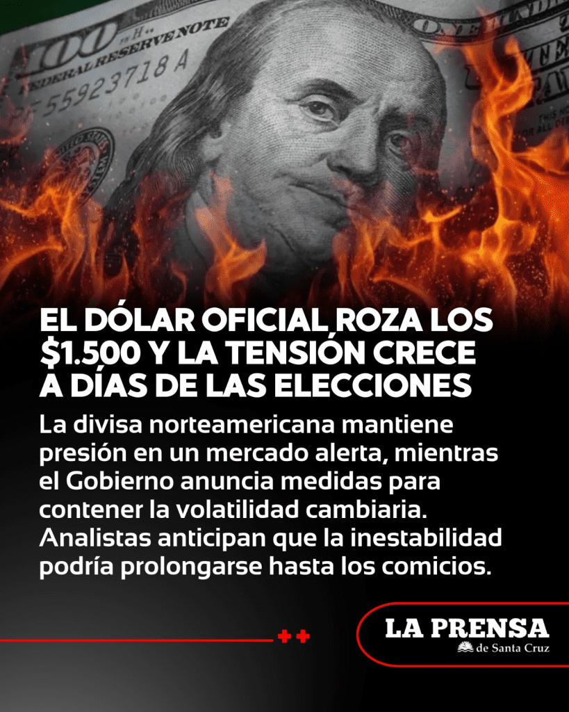 El dólar oficial se acercó a los $1.500 y superó los $1.550 en las cotizaciones financieras, como MEP y CCL, en los días previos a las elecciones generales. La demanda de divisas se mantiene firme, mientras el Gobierno multiplica anuncios con el objetivo de tranquilizar a los inversores. Entre las medidas más recientes se confirmó un swap con Estados Unidos por 20.000 millones de dólares, de libre disponibilidad, junto con una recompra de deuda, iniciativas que buscan sostener la confianza pero que hasta el momento no lograron contener la volatilidad cambiaria.