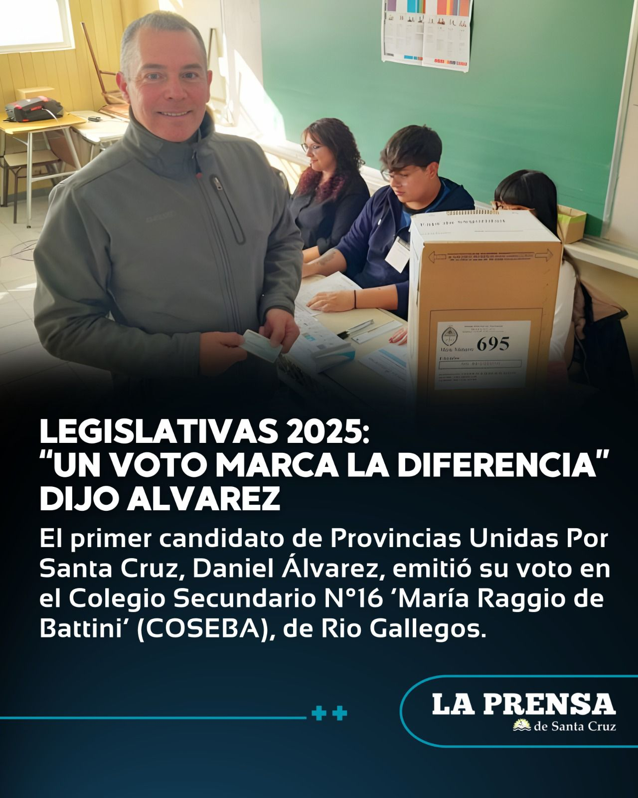 El primer candidato de Provincias Unidas Por Santa Cruz, Daniel Álvarez, emitió su voto en el Colegio Secundario N°16 ‘María
