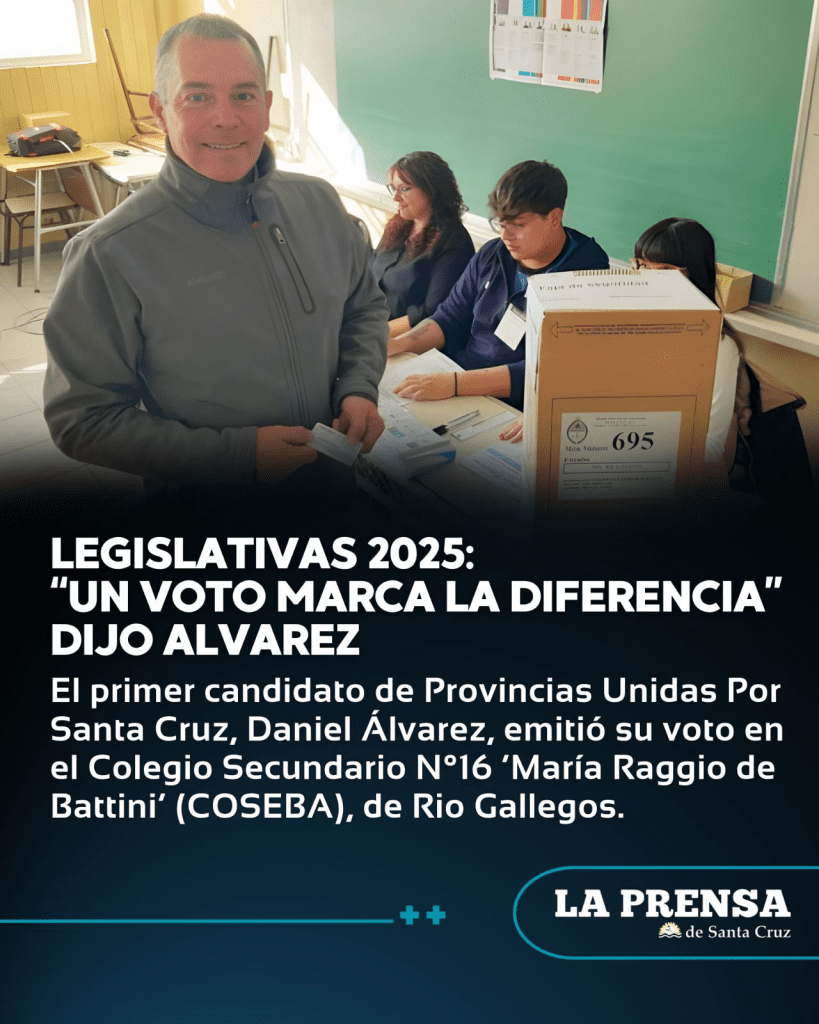 El primer candidato de Provincias Unidas Por Santa Cruz, Daniel Álvarez, emitió su voto en el Colegio Secundario N°16 ‘María Raggio de Battini’ (COSEBA), de Rio Gallegos.