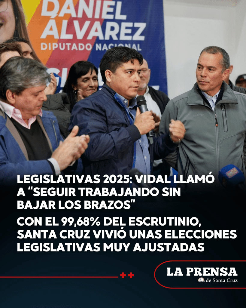 Con el 99,68% del escrutinio contabilizado, Santa Cruz cerró unas elecciones legislativas muy reñidas, en las que Fuerza Santacruceña obtuvo el 32,10% de los votos y La Libertad Avanza alcanzó el 31,70%, reflejando la polarización entre ambos espacios políticos.