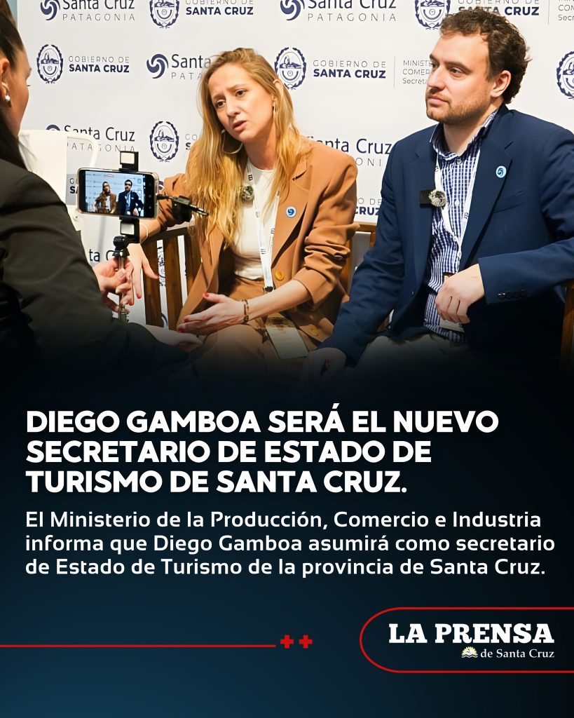 El Ministerio de la Producción, Comercio e Industria informa que Diego Gamboa asumirá como secretario de Estado de Turismo de la provincia de Santa Cruz, mientras que Mercedes Zavalía ocupará el cargo de directora Provincial de Turismo.