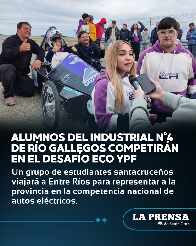 Los alumnos de sexto año del Colegio Industrial N°4 de Río Gallegos se preparan para participar del Desafío Eco YPF, una competencia que reúne a escuelas técnicas de todo el país con el objetivo de promover la innovación y el uso de energías limpias. Los jóvenes presentarán el auto eléctrico que construyeron durante el año, fruto de un intenso trabajo en equipo y de la aplicación práctica de los conocimientos adquiridos en la modalidad Electromecánica.
