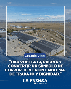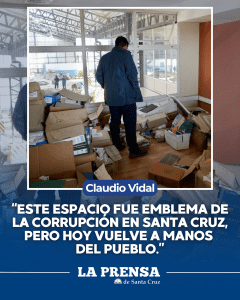 Al recorrer las instalaciones, Vidal expresó sentir “mucha tristeza y bronca” por el estado de abandono, pero aseguró que esa indignación se convertirá en trabajo y oportunidades. “Este espacio fue emblema de la corrupción en Santa Cruz, pero hoy vuelve a manos del pueblo”, afirmó.