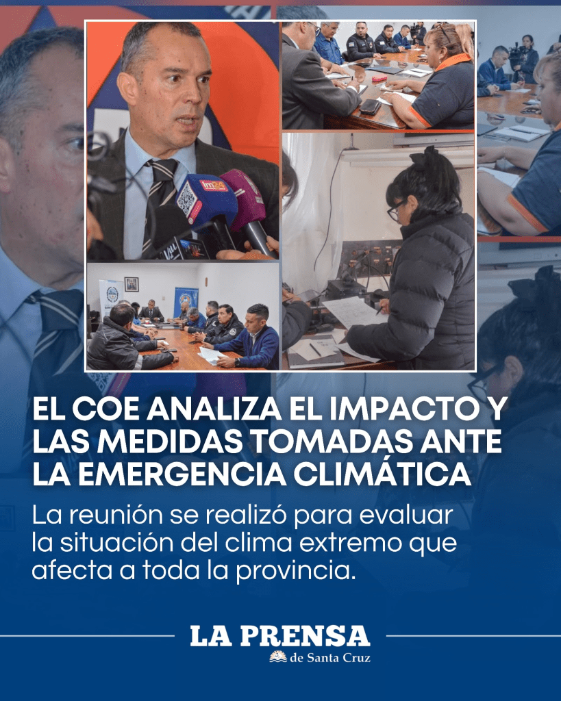 El Comité de Operaciones de Emergencia (COE) se reunió este mediodía en las instalaciones de la Subsecretaría de Protección Civil en Río Gallegos con el fin de analizar el impacto del temporal y las acciones preventivas que se están desarrollando en todo el territorio.